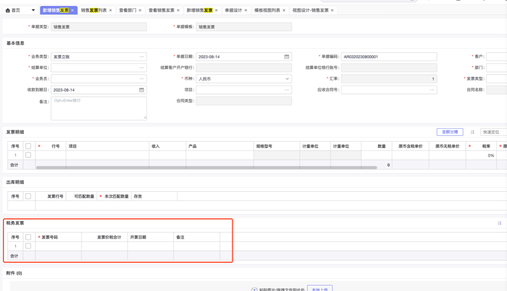 新增销售发票