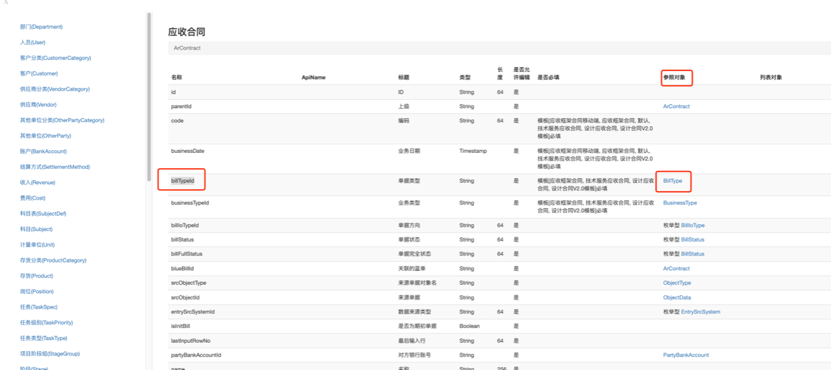 1.如下图,数据字典中应收合同的单据类型参照对象为BillType