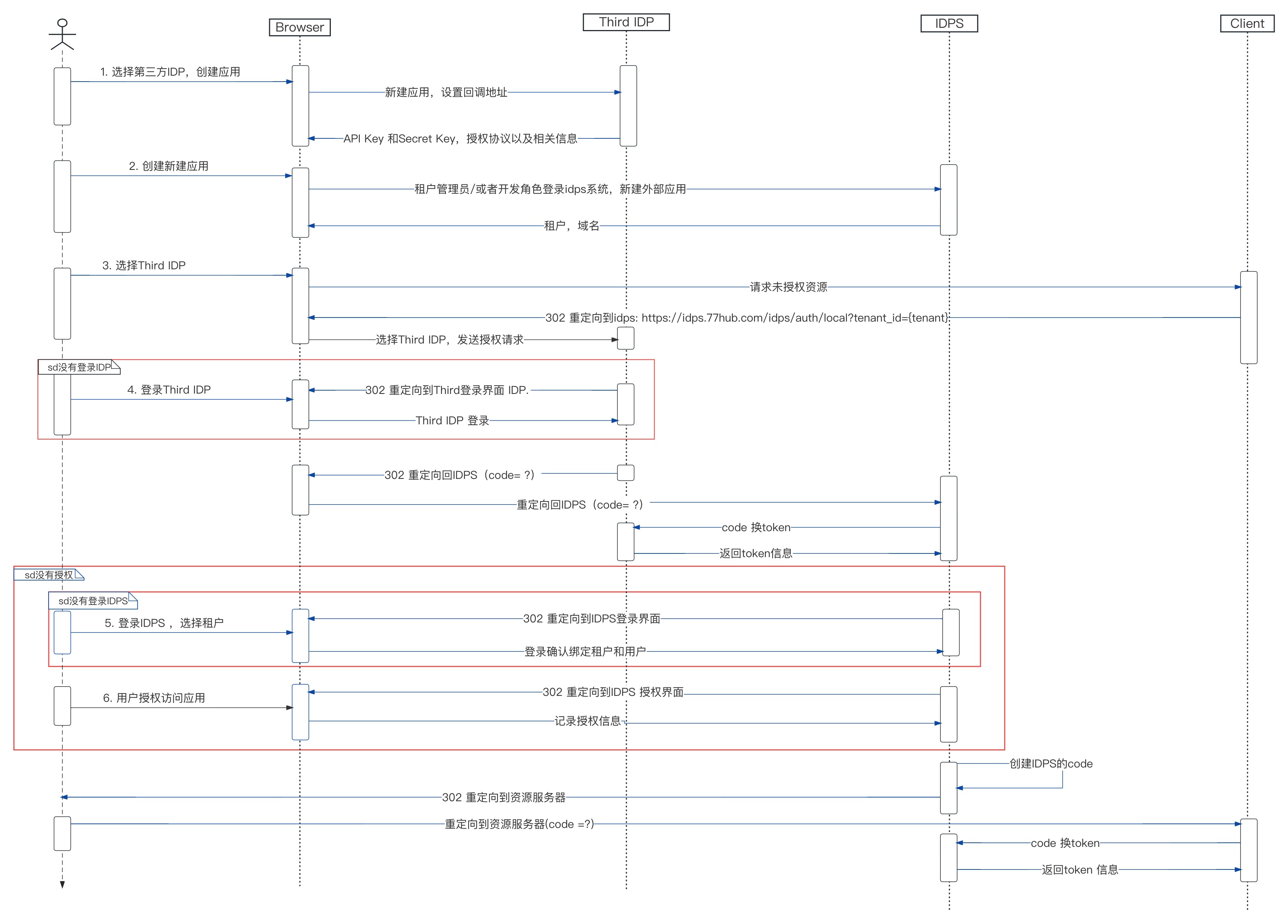 a. 通过IDPS 绑定的第三方账号登录流程如下图所示: